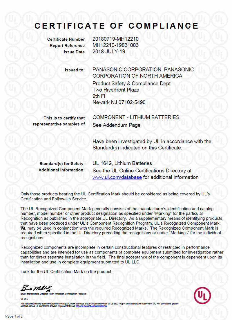 • Panasonic/松下: BR系列扣式鋰電池 CR系列扣式鋰電池 耐高溫BR“A”系列扣式電池 耐高溫CR“AB”系列扣式電池 CR系列圓筒形鯉電池(標準型) LR系列圓筒形干電池
